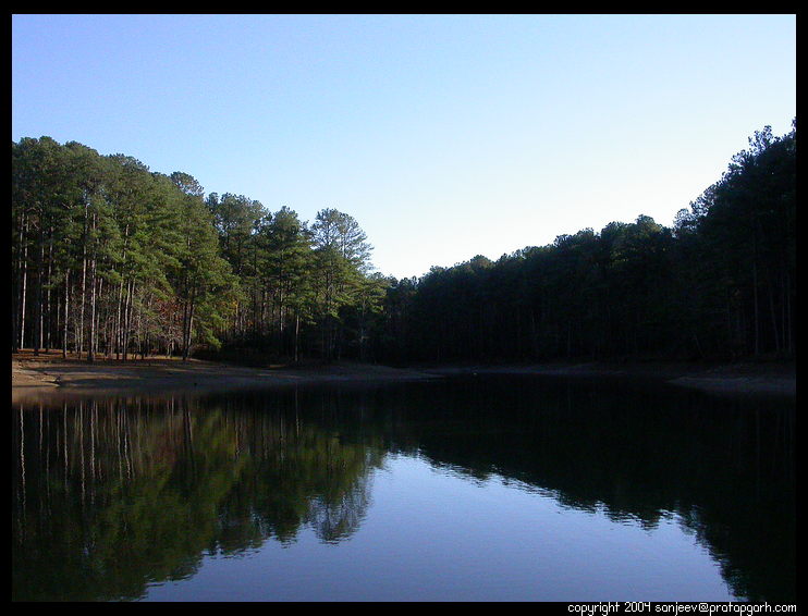 In this season, the shoreline of the lake has receded a bit. Trees that once